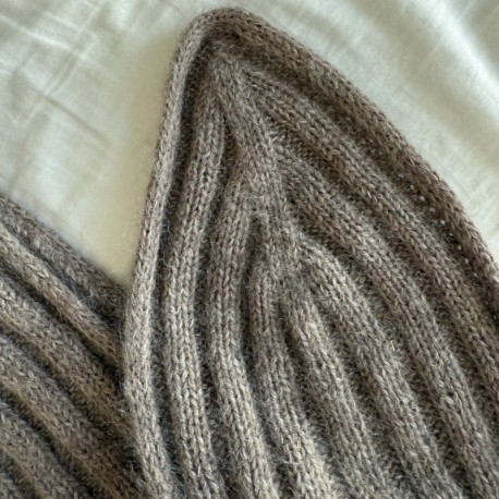 Es wird mit einem Faden Merino und zwei Fäden Soft Silk Mohair von Knitting for Olive gestrickt. Die angegebenen Garnmengen entsprechen dem Gesamtverbrauch.