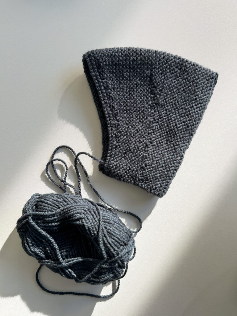 Und Ursula strickt gerade eine Hector’s Bonnet mit Sandnes Double Sunday in der Farbe Blue Natt 6580.