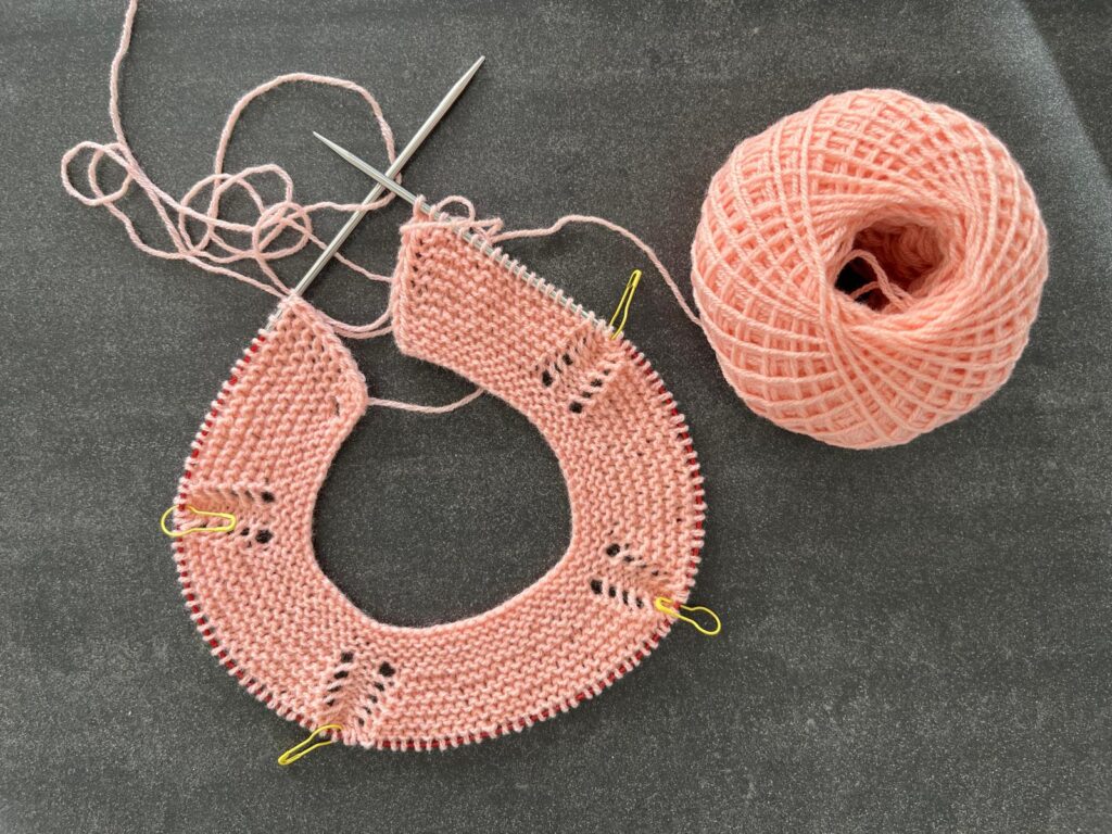 Annelies strickt den Garter Cardigan Baby von Knitting for Olive mit Merino in der Farbe Poppy Rose.