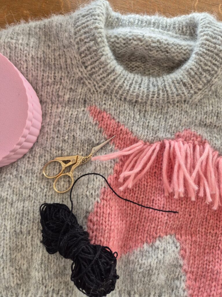 Anna strickt den Always 4-ever Unicorn Sweater von Wool And Beyond mit Camarose Snefnug in den Farben Creme 7141 und Stovet Rosa 7914.