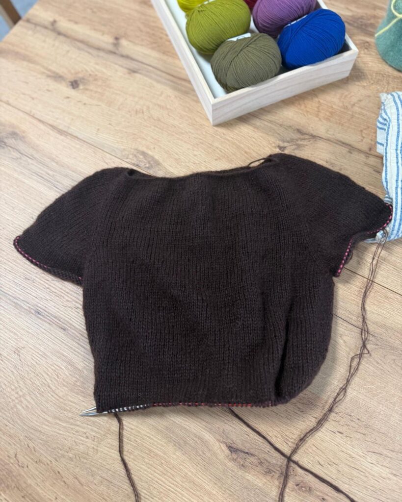 – der Hilma Cardigan von Kolibri by Johanna, gestrickt mit zwei Fäden Kaos Yarn Organic Soft Merino