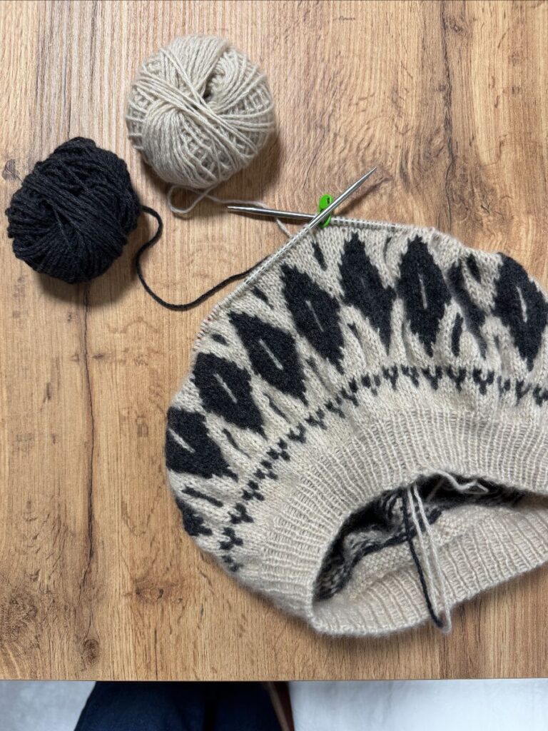 – Michèle hat ihren Juri Sweater aus Filcolana Peruvian schon fast fertig gestrickt