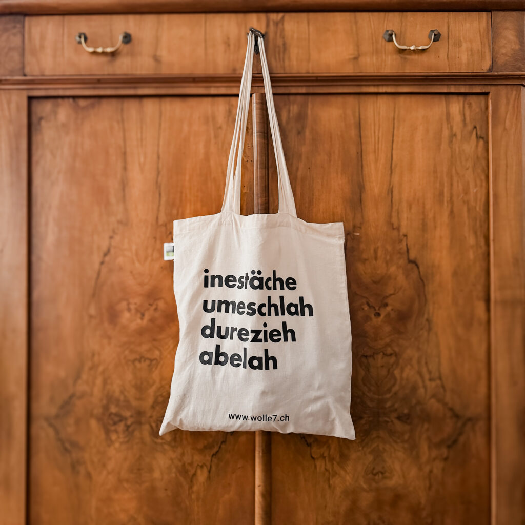 Heute gilt es schnell zu sein! Denn die ersten 10 Bestellungen über CHF 100.- erhalten kostenlos eine unserer praktischen Umhängetaschen mit der Aufschrift „inestäche, umeschlah, durezieh, abelah“.